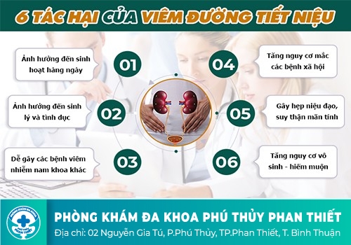 Ảnh hưởng đến chức năng thận: Viêm đường tiết niệu có thể lây lan đến thận, gây nên những biến chứng nguy hiểm như giảm chức năng thận, gây nhiễm trùng thận, suy thận, thậm chí ảnh hưởng đến tính mạng người bệnh.